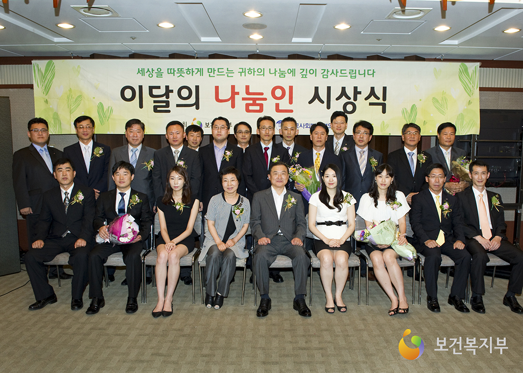 한국인삼공사 정관장 사회봉사단은 사회 곳곳에서 나눔을 실천하는 개인 및 단체에게 수여하는 “이달의 나눔인 상”을 한국사회복지협의회로부터 7월 20일 수상하였다. 이 상은 회사 창립 이후 대전 및 부여 지역을 중심으로 저소득 가정 아동 학습지원 활동 노인 목욕 및 반찬 배달 활동, 장애인 나들이 지원 활동 등 정관장 사회봉사단의 지속적인 봉사활동에 대한 공로를 인정받아 수상하게 되었다.