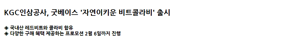 KGC인삼공사가 자연소재 브랜드 ‘굿베이스’의 신제품인 ‘자연이키운 비트콜라비’를 출시했다.