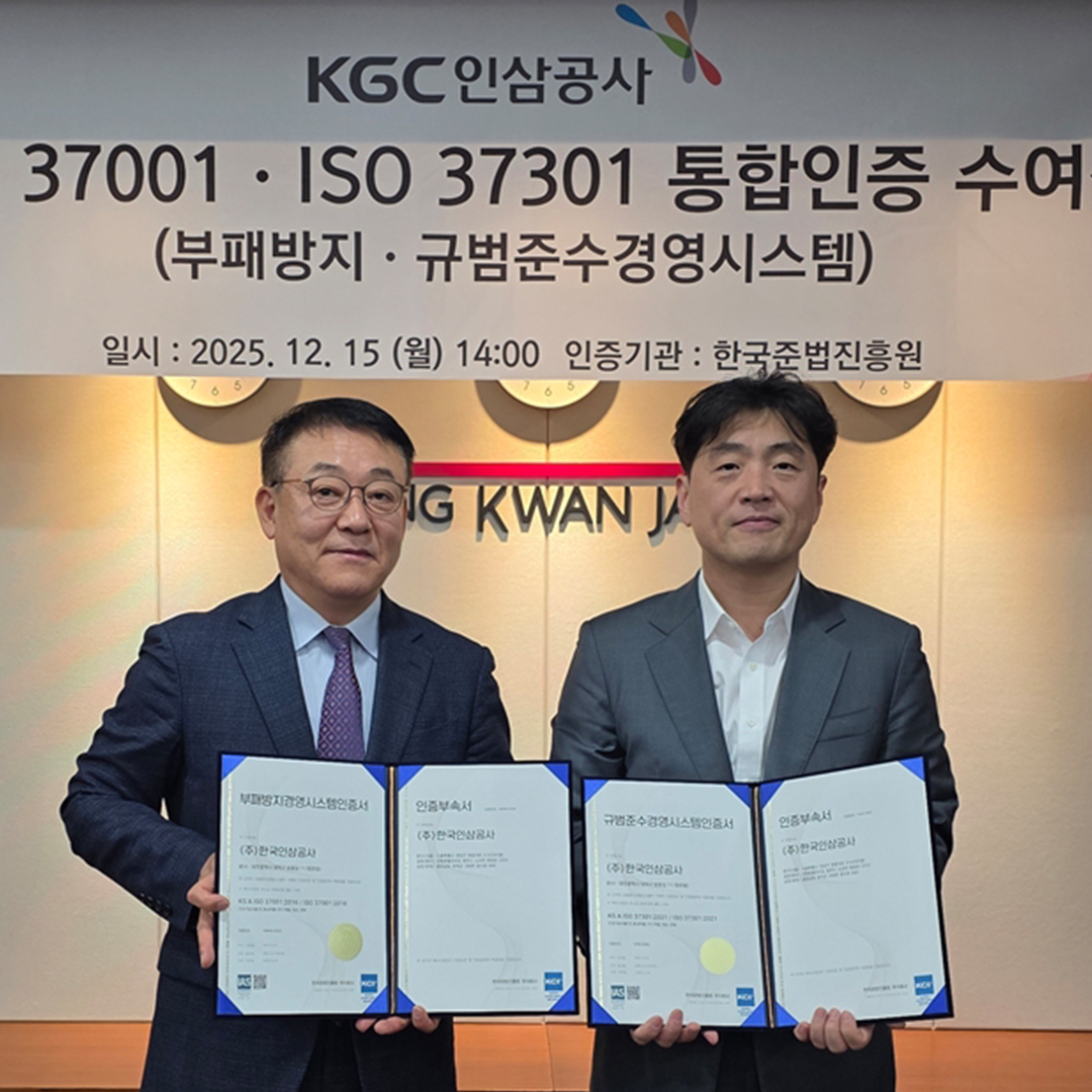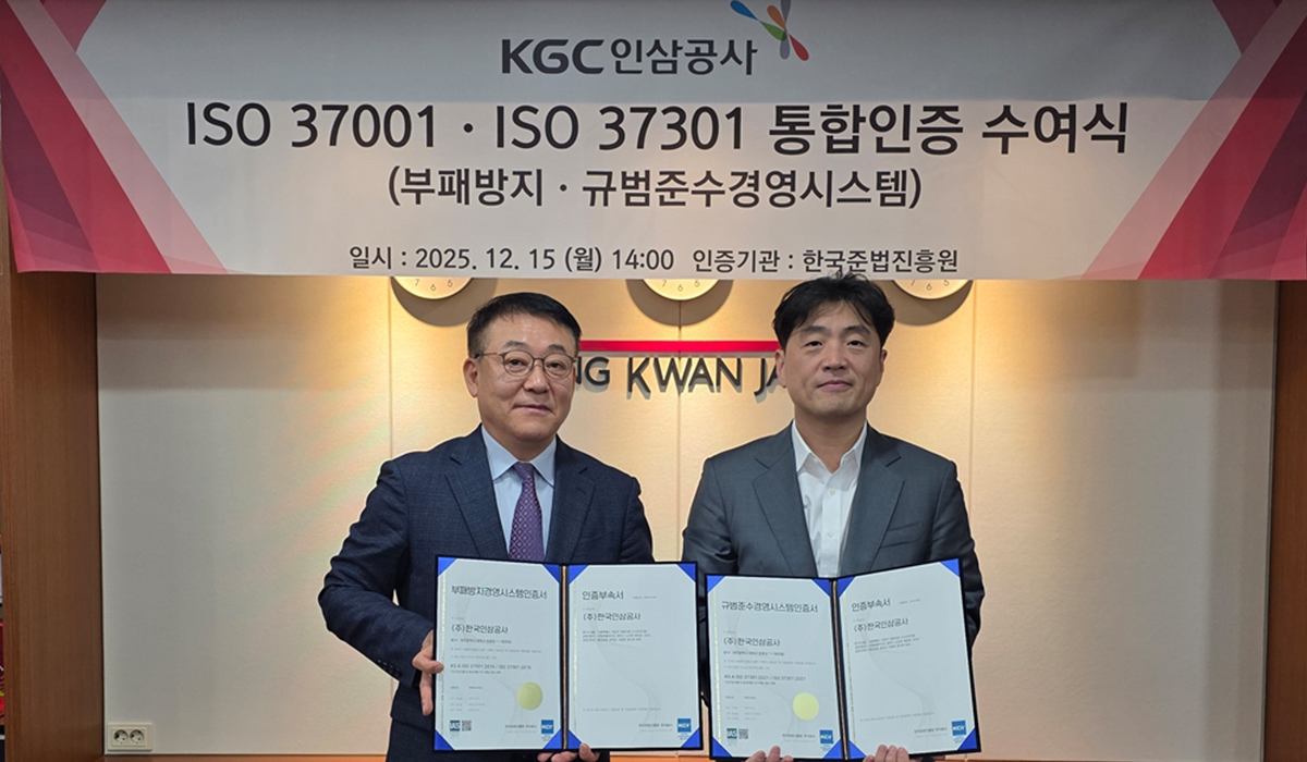 KGC인삼공사, 규범준수∙부패방지 ISO 통합 인증 획득으로 컴플라이언스 체계 고도화