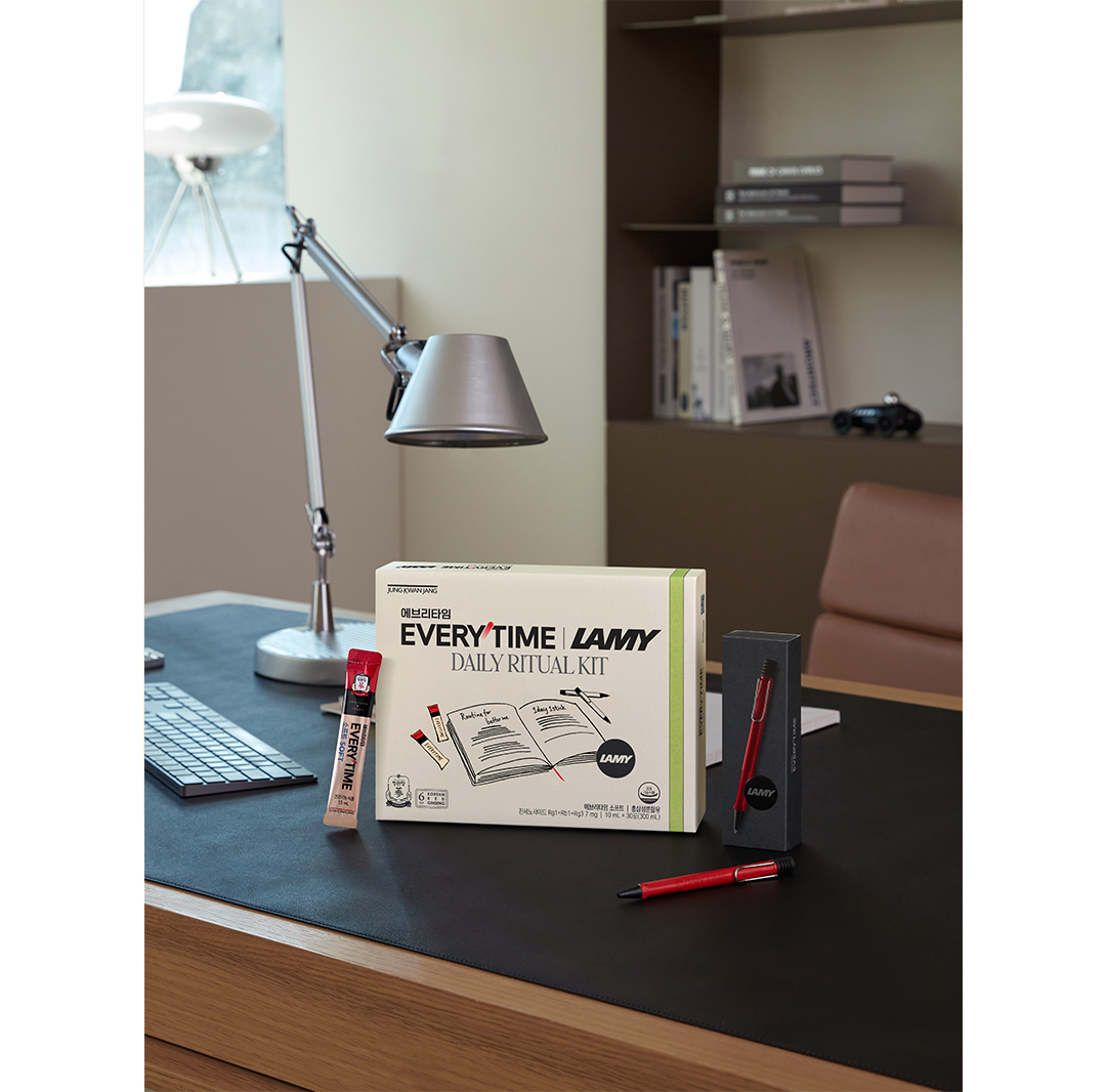 최고의 품질을 지향하는 브랜드가 함께한 ‘에브리타임xLAMY 데일리 리추얼’ 은 정관장 네이버 스마트스토어와 카카오에서만 만나볼 수 있다. 특히 12월 1일부터 14일까지 출시를 기념한 할인 행사도 네이버 스마트 스토어에서 진행된다.