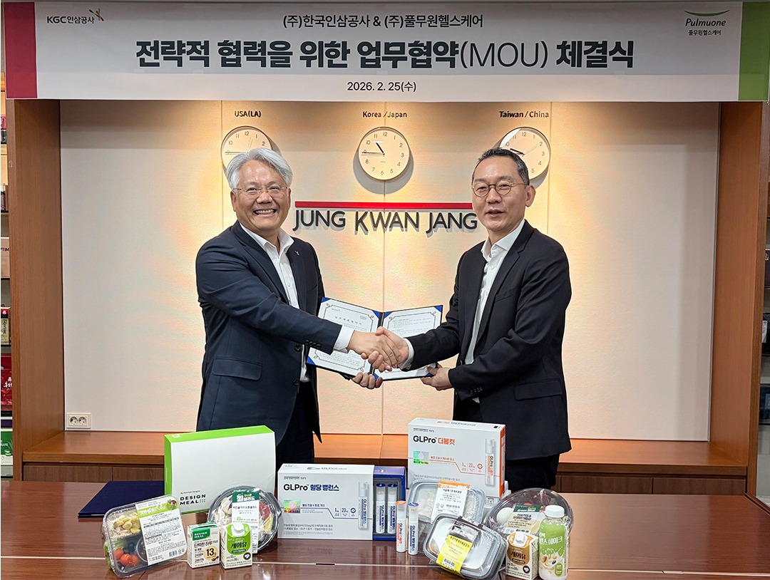 KGC인삼공사는 풀무원헬스케어와 시니어 건강 및 혈당 케어 시장 확대를 위한 업무협약(MOU)을 25일(수) 서울 강남구 대치동에서 체결했다고 밝혔다.