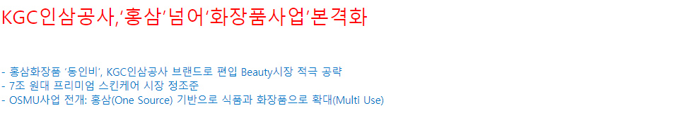 또한 ‘동인비’의 홍삼피부효과에 대한 R&D 및 마케팅을 강화할 계획이다.