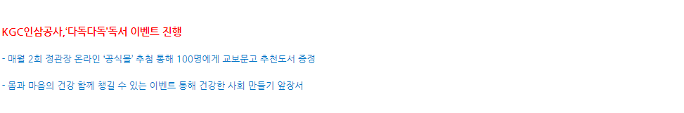 KGC인삼공사는 고객들 몸 건강 뿐만 아니라 마음의 건강도 함께 챙기기 위해 ‘다독다독(多讀多讀)’ 독서 이벤트를 진행한다.