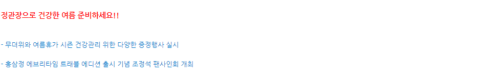 여성 건강용 제품인 화애락진(본) 2개 구매 시 동인비초 클렌징폼을 증정하고, 어린이용 홍삼제품인 홍이장군 1~3단계 구매 고객에게는 여름철 물놀이 때 좋은 ‘홍이장군 비치타월’을 증정한다.