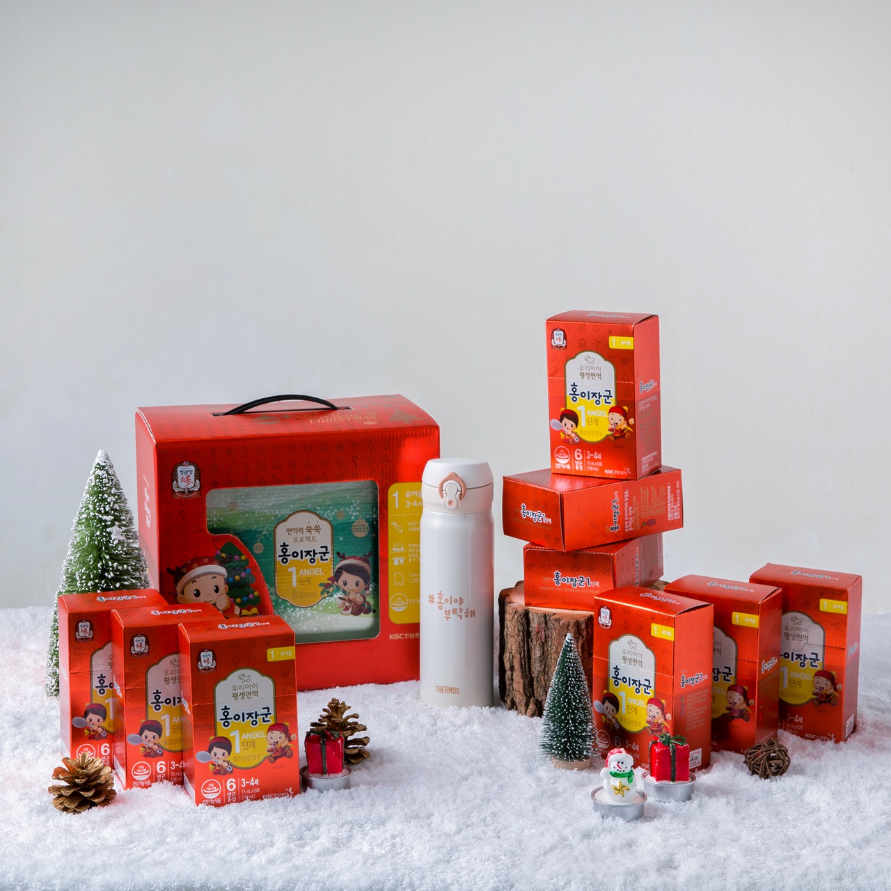 ‘홍이장군 크리스마스 에디션’에는 어린이용 홍삼제품인 홍이장군(1/2/3단계) 90포(3개월분)와 글로벌 보온병 브랜드인 써모스(THERMOS) 보온병이 함께 담겨있다.