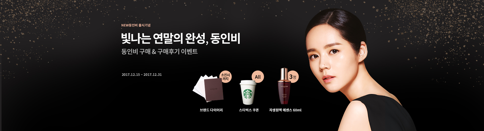 이벤트 기간 내에 정관장몰에서 동인비 제품 구매 시 ‘동인비 다이어리’를 증정하며, 제품 구매 후기 작성자 전원에게는 ‘스타벅스 쿠폰’을 증정한다. 제품 구매 후기는 정관장몰에서 구매 확정 후 등록이 가능하며, 우수 후기 작성자 3명에게 ‘자생원액 에센스(60ml)’를 증정한다.