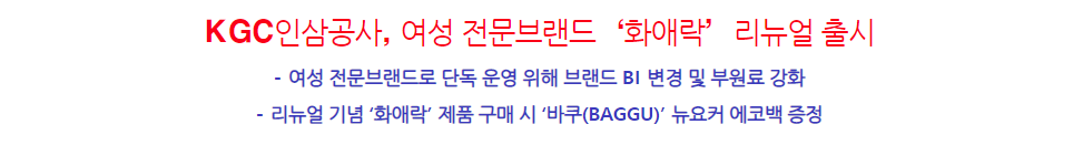 KGC인삼공사(대표이사 박정욱)가 여성 전문브랜드 ‘화애락’을 리뉴얼 출시 한다고 밝혔다.